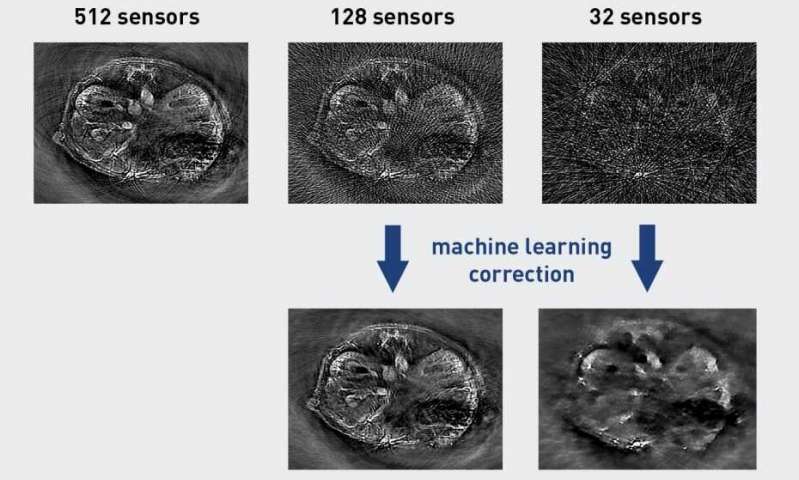 Scientists at ETH Zurich and the University of Zurich have used machine learning methods to improve optoacoustic imaging. This relatively young medical imaging technique can be used for applications such as visualizing blood vessels, studying brain activity, characterizing skin lesions and diagnosing breast cancer. However, quality of the rendered images is very dependent on the number and distribution of sensors used by the device: the more of them, the better the image quality. The new approach developed by the ETH researchers allows for substantial reduction of the number of sensors without giving up on the resulting image quality. This makes it possible to reduce the device cost, increase imaging speed or improve diagnosis.