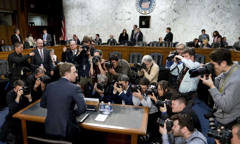 In this April 10, 2018, file photo, Facebook CEO Mark Zuckerberg returns from a break as he testifies before a joint hearing of the Commerce... Read More